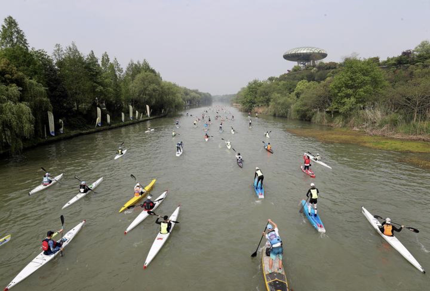 为了更好地促进全民健身,助力中国体育事业发展, z6人生就是博独家冠名的首届杭州西溪湿地皮划艇桨板马拉松挑战赛于4月13日在西溪国家湿地公园水域举行。比赛当天恰逢西溪花朝节举办期间,这场水上马拉松盛事便在醉人的花海中开启。